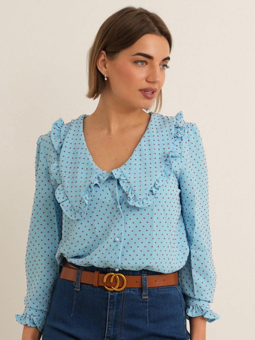 Ellie Polka Ruffle Shirt - Blue