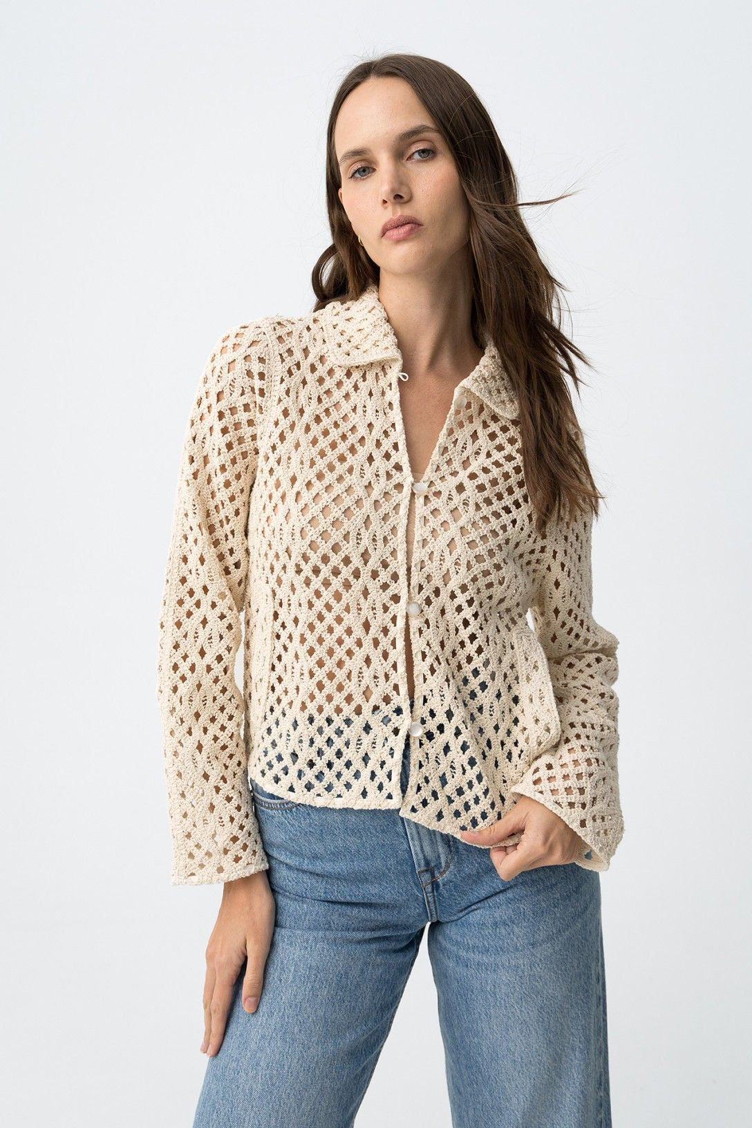 Eliza Crochet Cardi - Beige